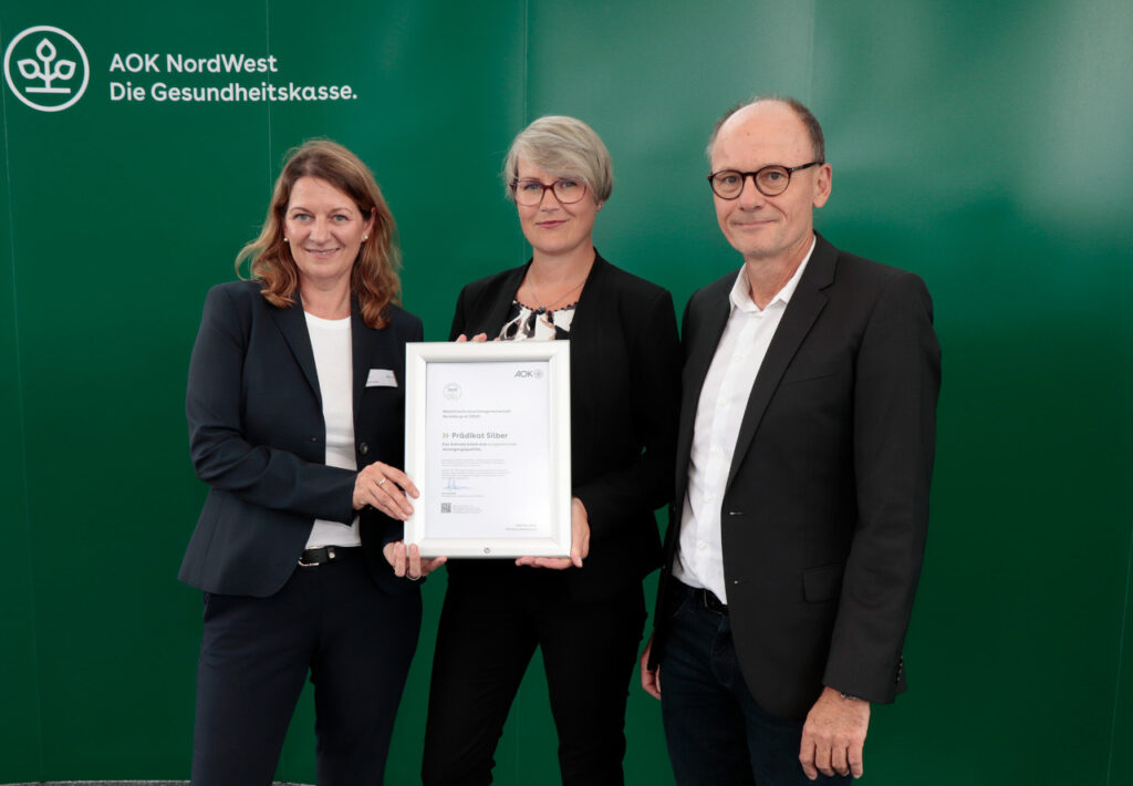 Die MQR ist eins von 51 Arztnetzen Bundesweit, welches für die herausragende Arbeit im Jahr 2023 durch die AOK Nordwest die Auszeichnung in Stufe 2 – Prädikat Silber erhalten hat – zum zweiten Mal in Folge. Die Urkundenübergabe hat am 23.07.2025 stattgefunden.